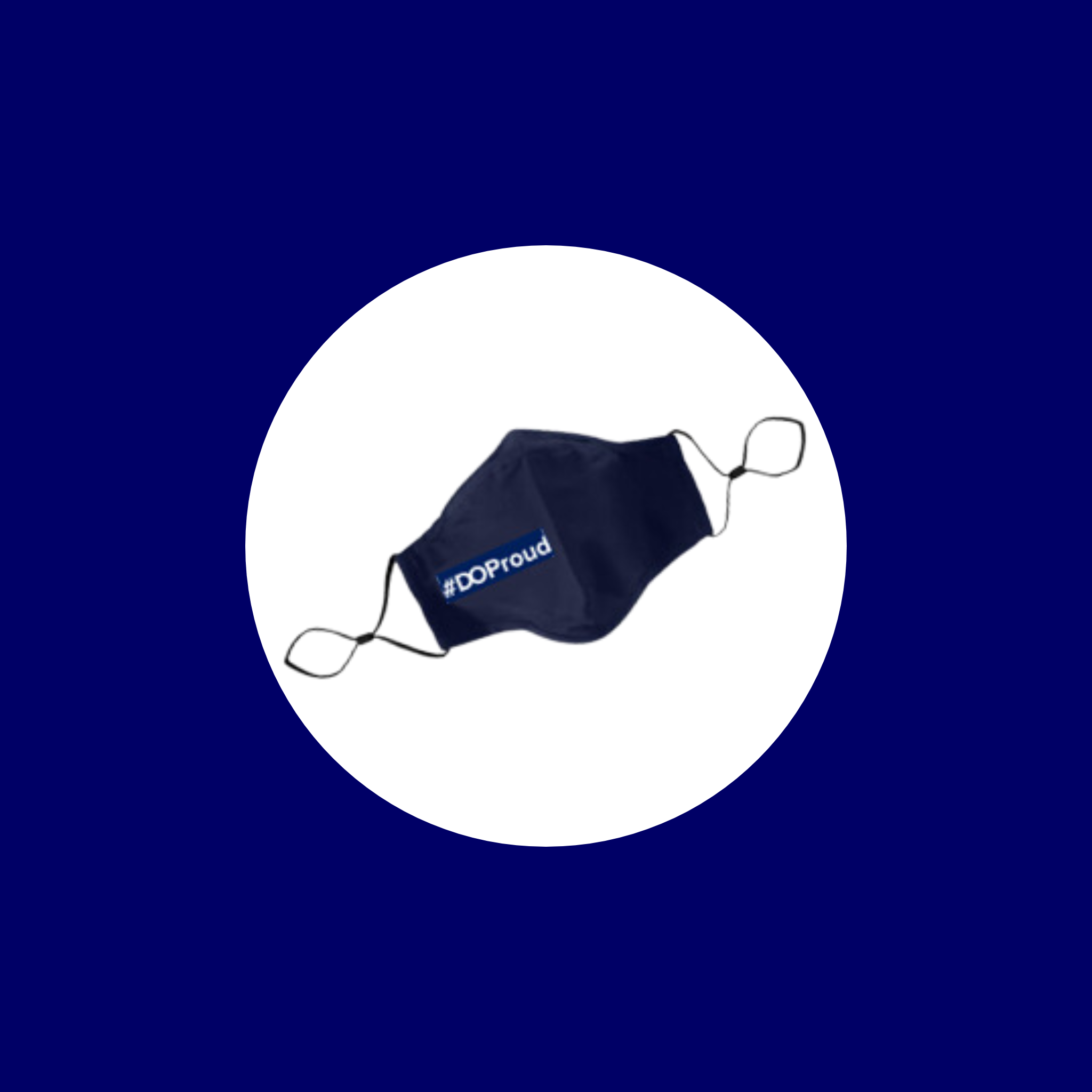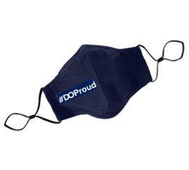 Navy mask with white imprint of #DO Proud
